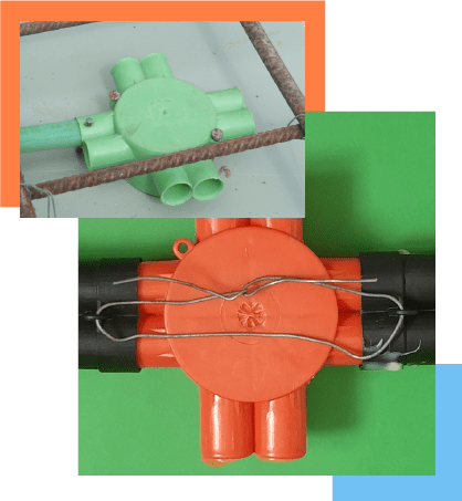 מתחברים לקופסאת חשמל בתקרה (שבדי) מארבעה צדדים , הצינורות מושחלים אליו ללא צורך במסמרים , מהודק לתקרה עם מסמר אחד או שניים או חוט ברזל.